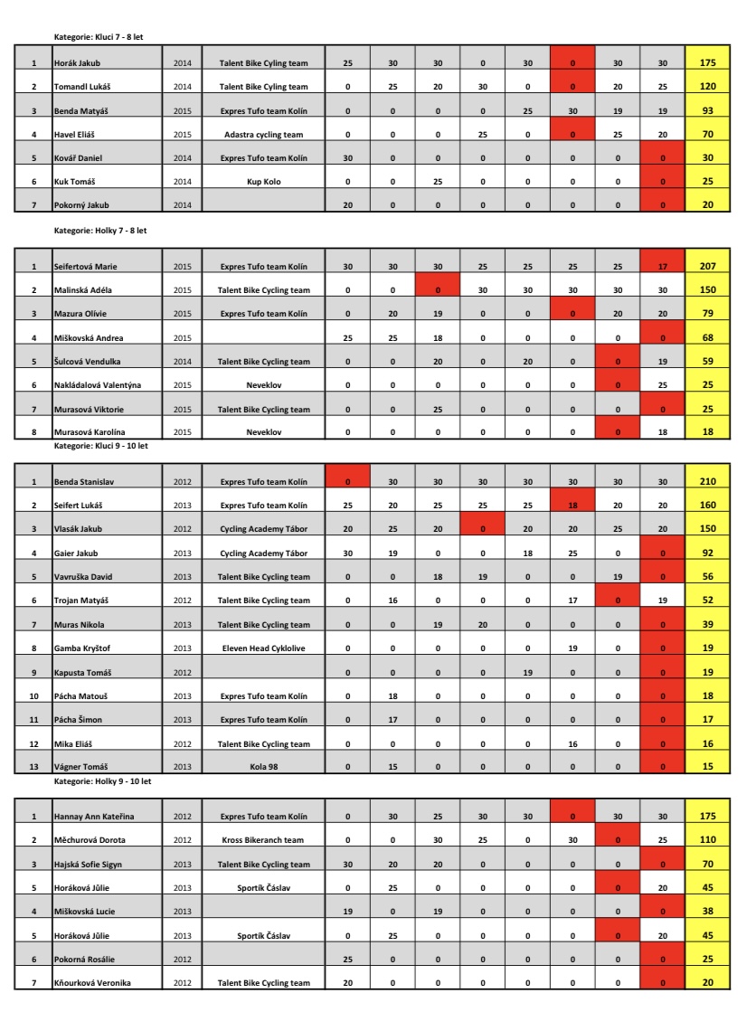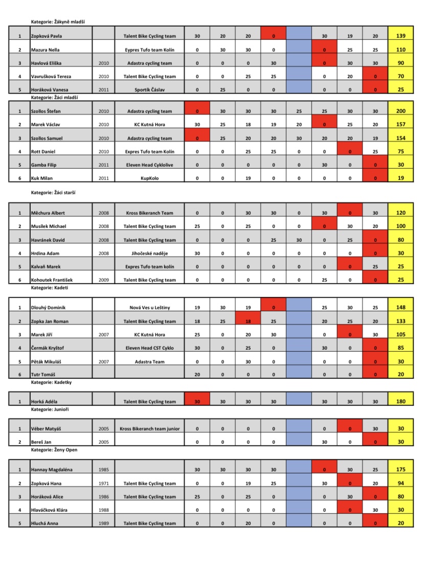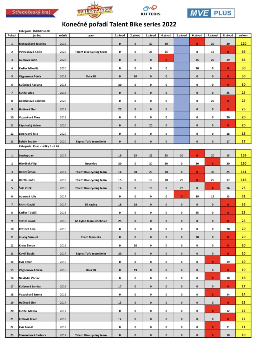 Konečné pořadí Talent Bike series 2022