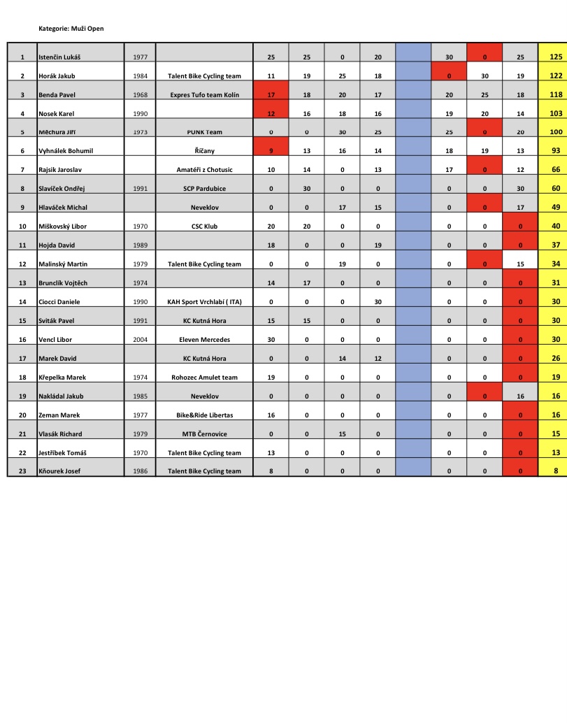 * červené pole značí škrt nejhoršího výsledku jednoho závodu v seriálu TBS 2022