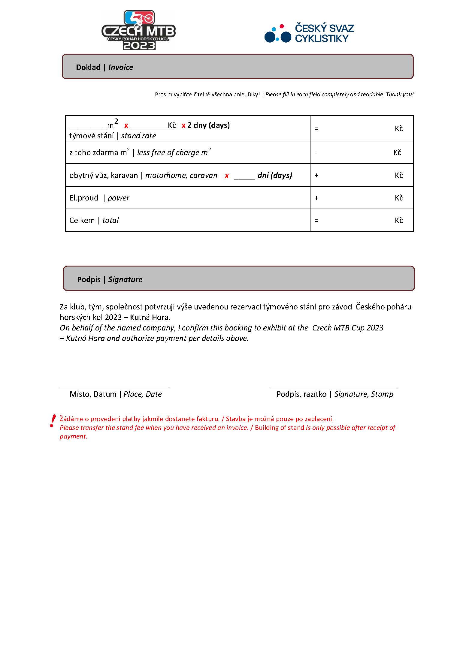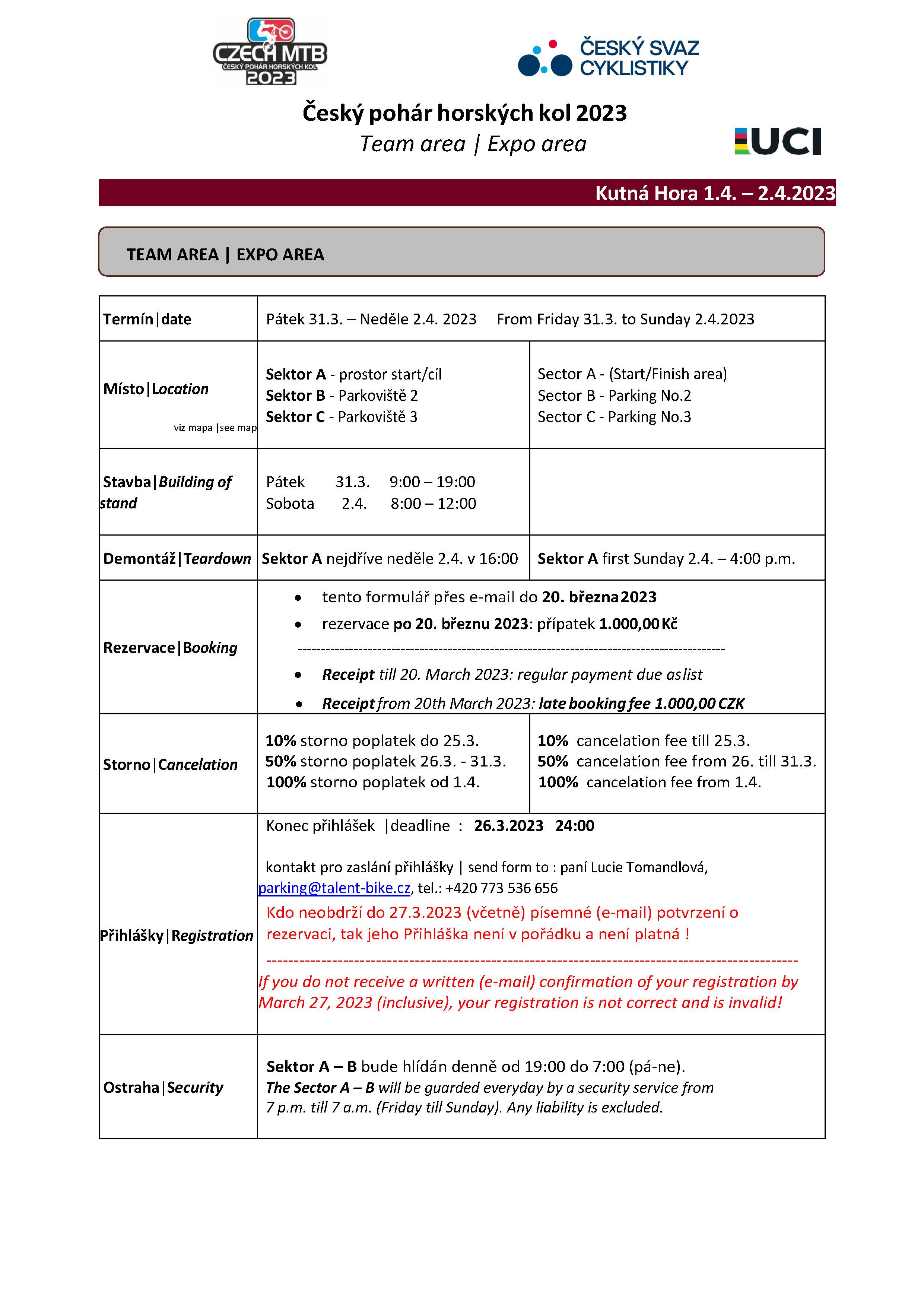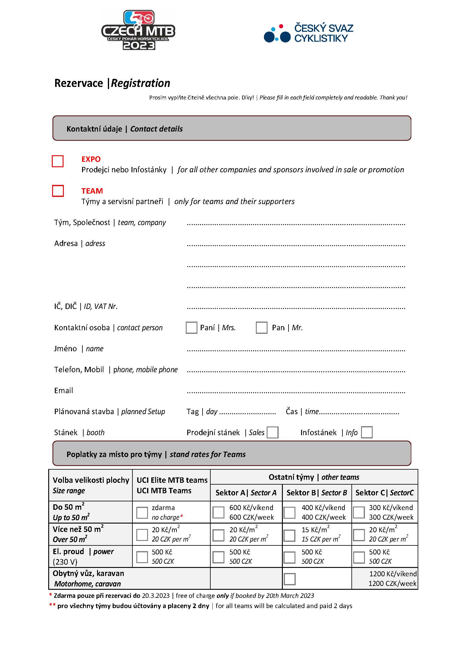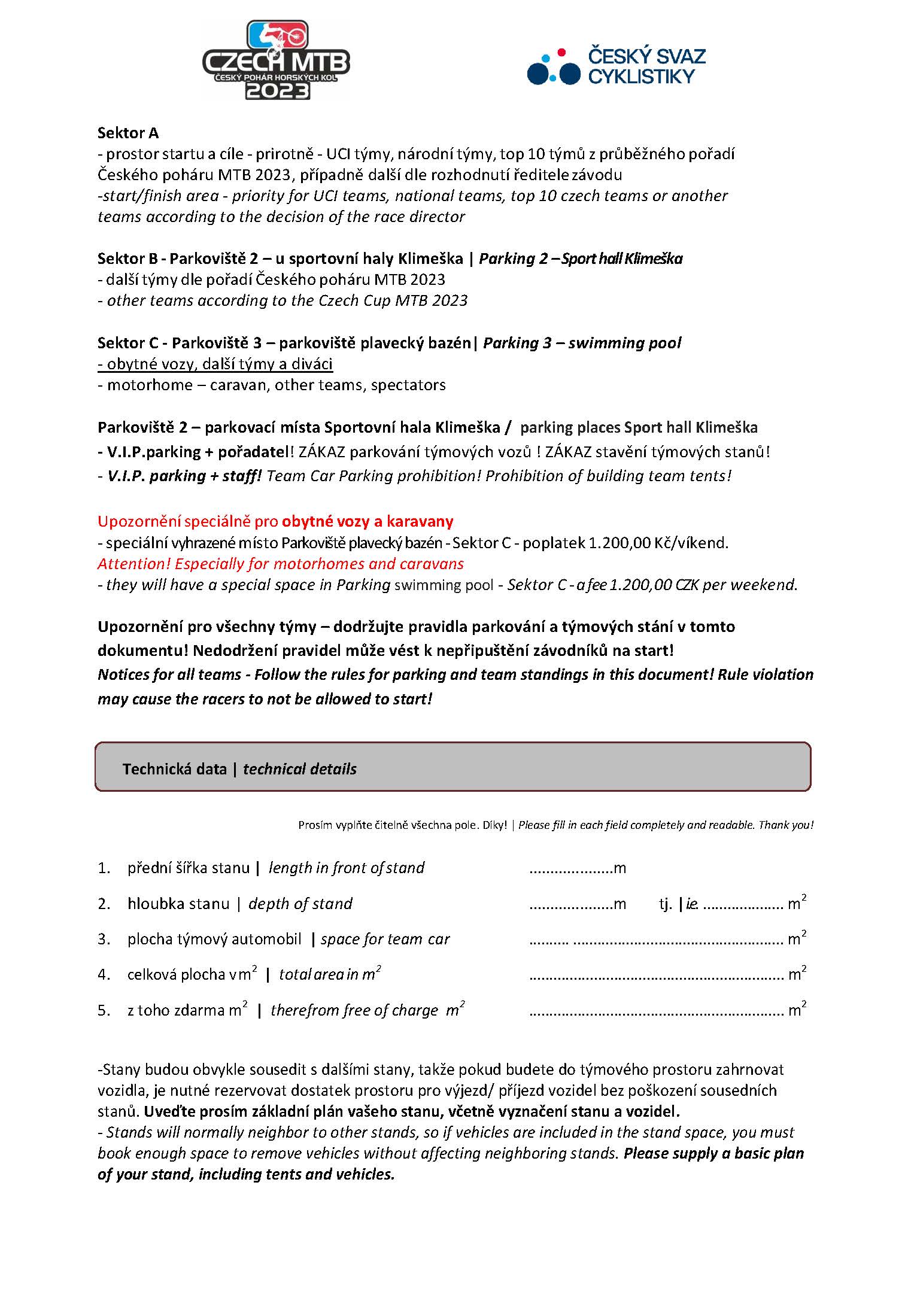 Pro přehlednější rezervaci parkování a teamového stánků, prosíme o vyplnění rezervačního listu. Děkujeme.