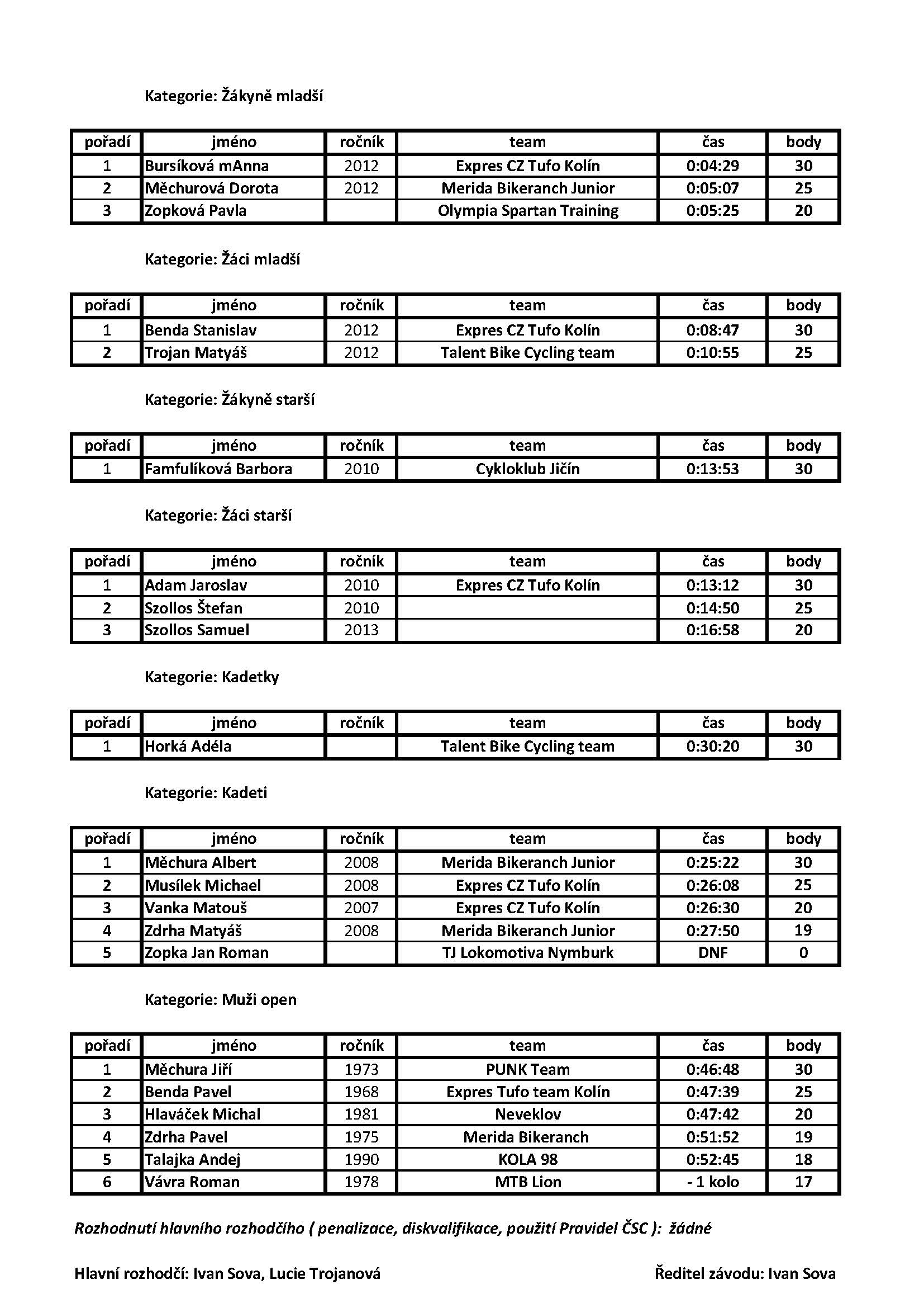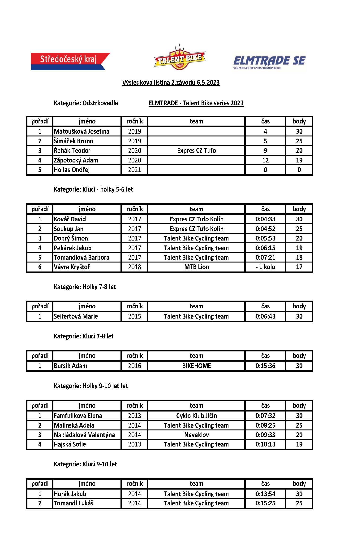 Výsledková listina 2.závod ELMTRADE - Talent Bike series 2023