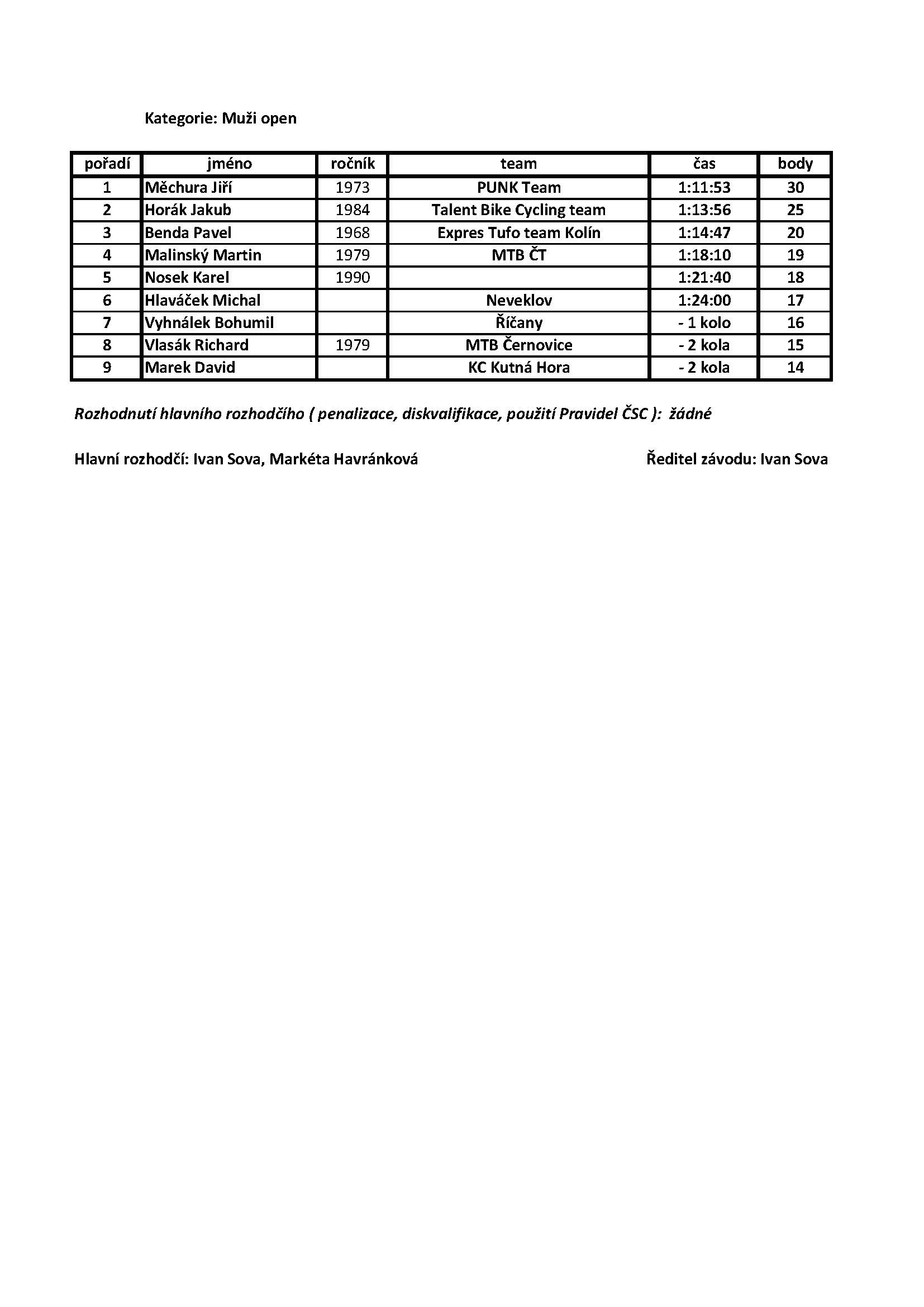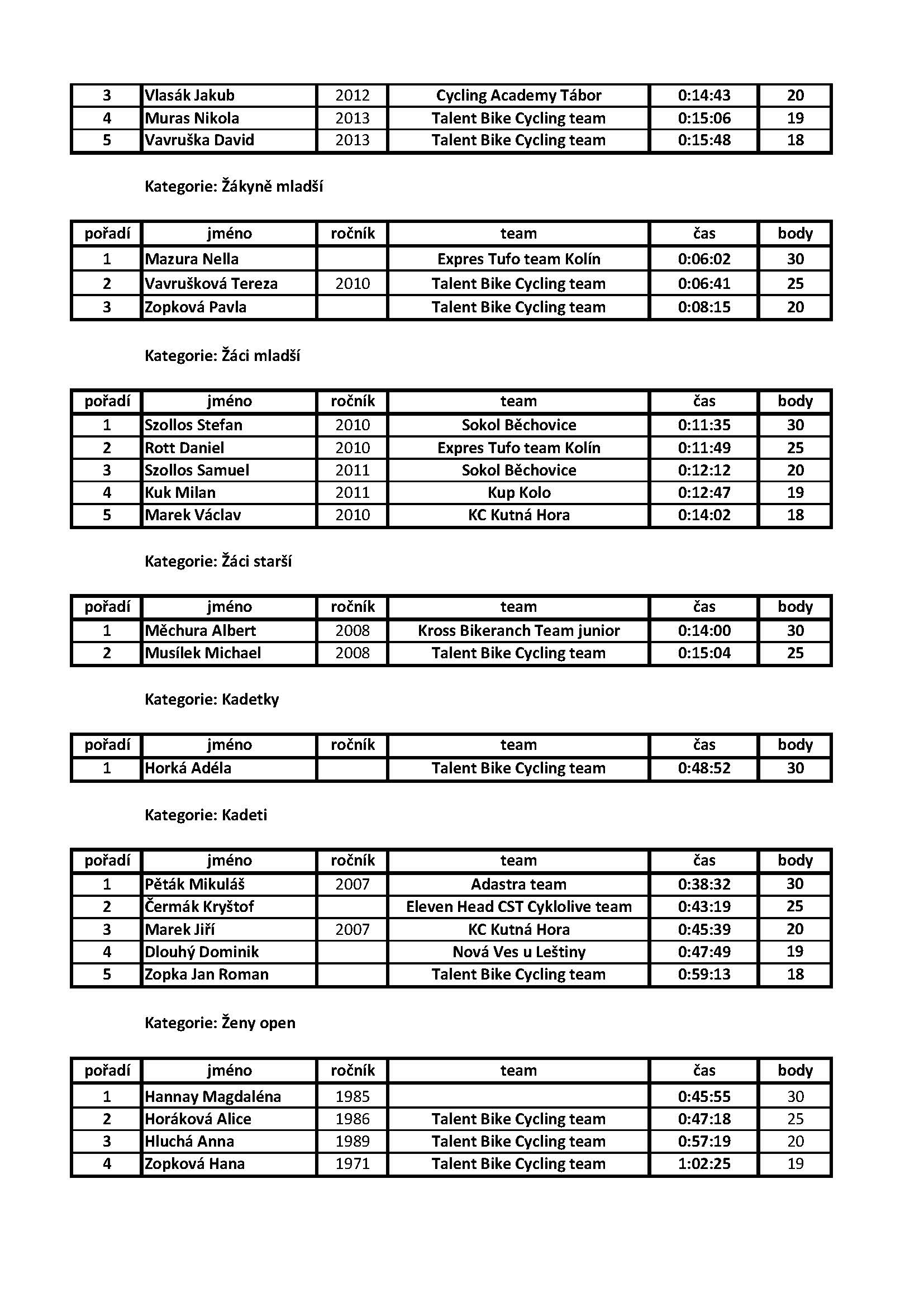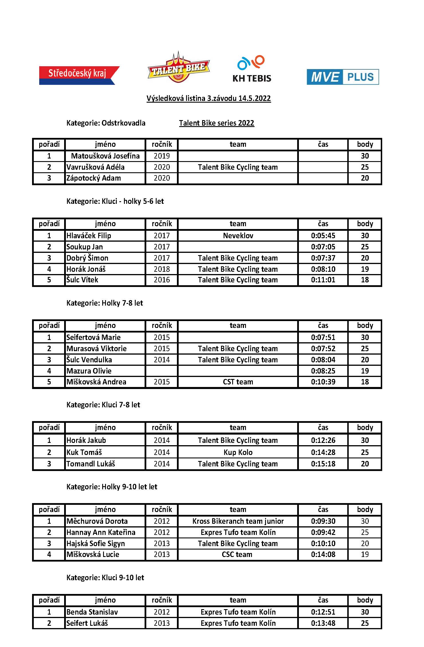 Výsledková listina 3.závod Talent Bike series 2022